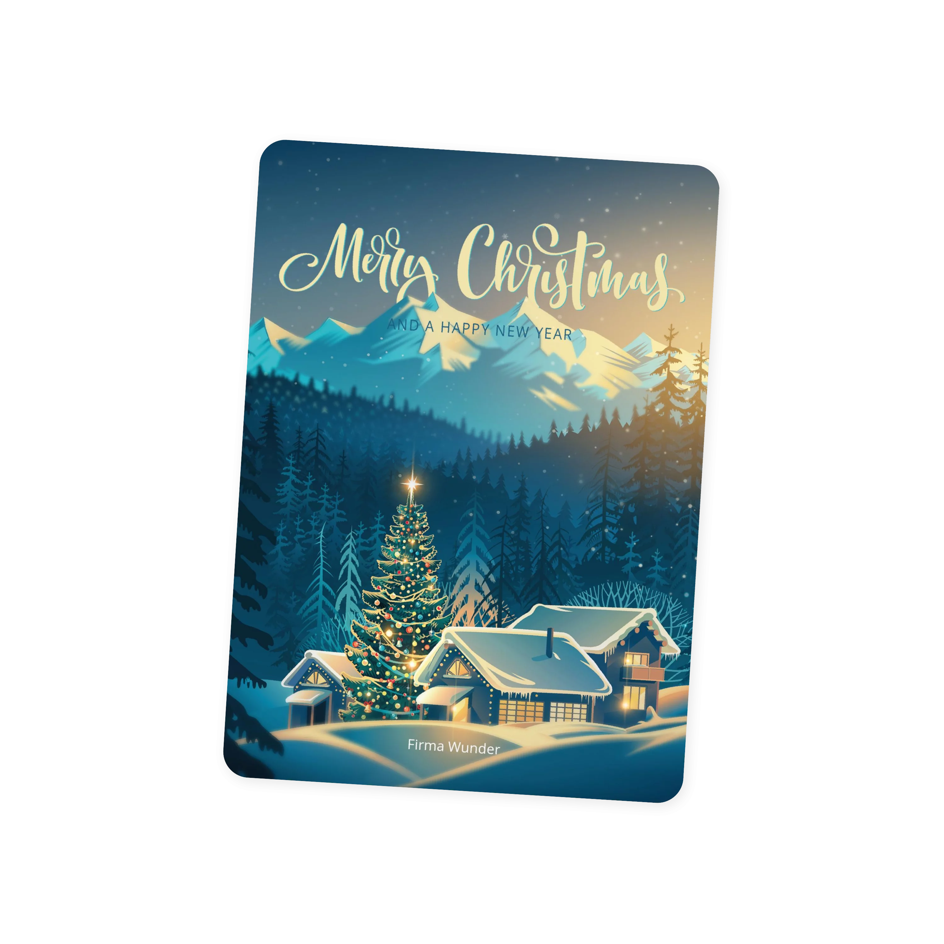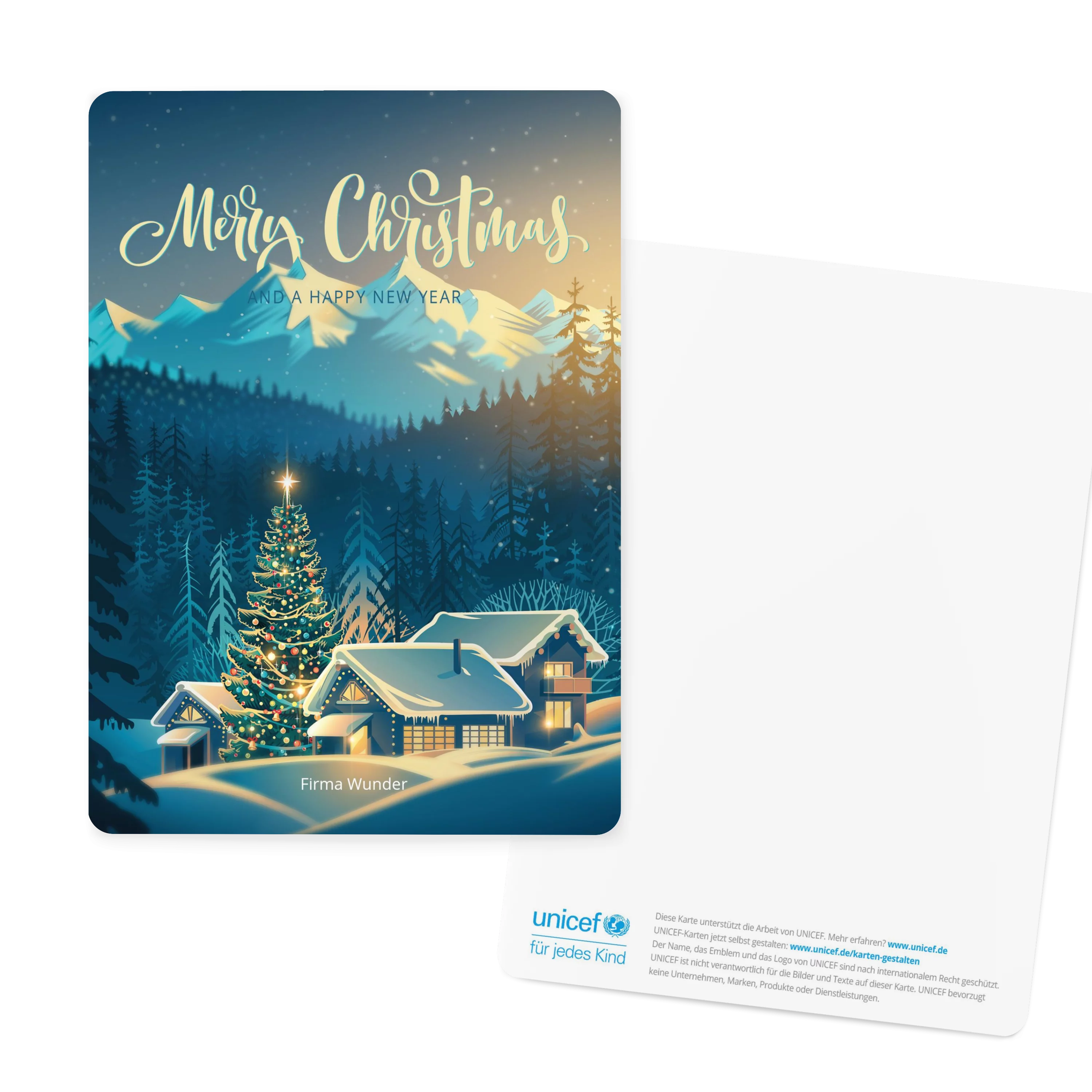 Weihnachtskarten gestalten mit dem Motiv „Winter Bergdorf“ im Retro-Look mit leuchtenden Farben und verschnörkelter Schrift. Klappkarte 11,8 cm x 16,6 cm, auch erhältlich als flache Karte oder Doppelklappkarte. Gestalten Sie Ihre Karten zu Weihnachten mit eigenen Fotos und persönlichem Text. Wir nutzen Papier aus nachhaltiger Forstwirtschaft und eine plastikfreie Verpackung. Mit dem Kauf von UNICEF Weihnachtskarten helfen Sie Kindern in Not. Jetzt Weihnachtskarten bestellen!