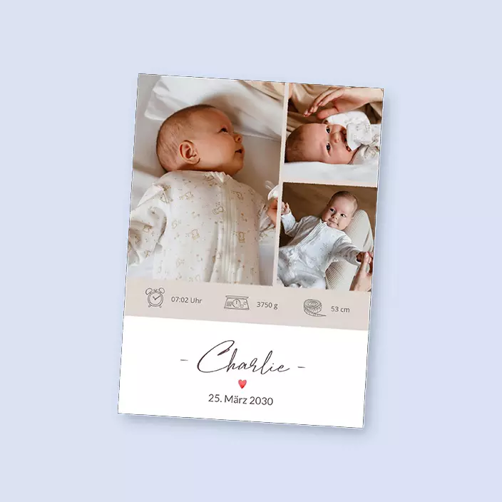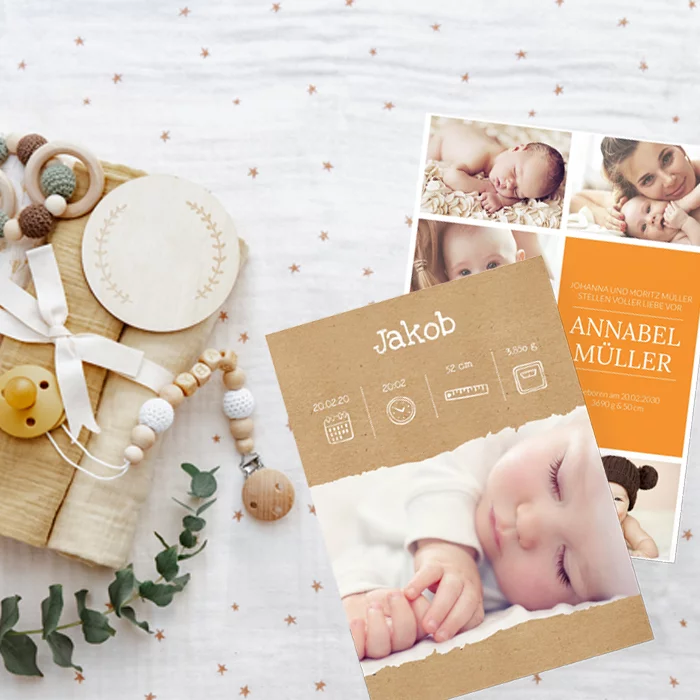 Ob für einen Sohn, eine Tochter, Zwillinge oder das erste Enkelkind – mit einem passenden Wunsch wird Ihre Glückwunschkarte zur Geburt zu einem ganz besonderen Erinnerungsstück. Bei uns können Sie Geburtskarten & Babykarten selbst gestalten online mit wenigen Klicks – mit Ihrem individuellen Glückwunsch-Text oder Spruch für das Kind, ganz nach Ihrem Geschmack.