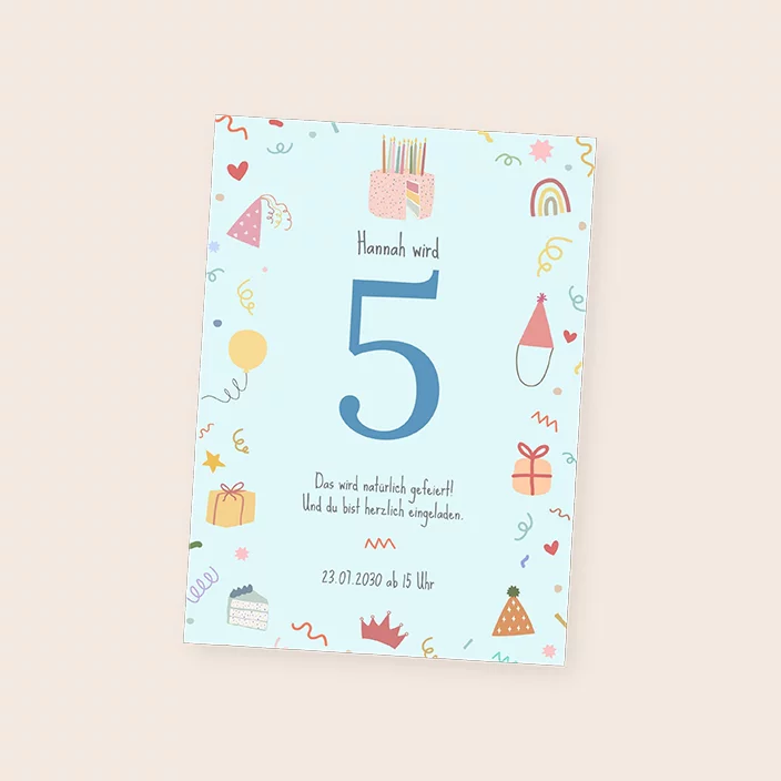 Die Einladung zum Geburtstag ist der Startschuss zur Feier. Kreativ gestaltete Einladungskarten vermitteln nicht nur alle wichtigen Infos, sondern steigern auch die Vorfreude der kleinen Gäste auf die Party. Falls Sie noch auf der Suche sind nach passenden Einladungskarten: Bei uns können Sie Ihre Einladungskarten zum Kindergeburtstag gestalten mit eigenem Text und Fotos oder können liebevoll designte fertige Karten im Set nutzen, um zum Kindergeburtstag einzuladen.