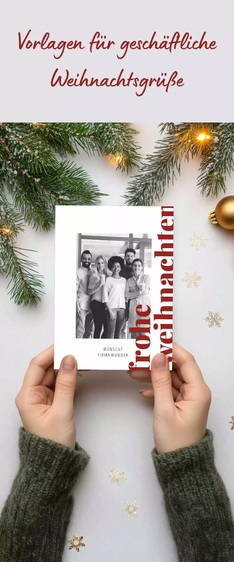 Und wenn Ihnen noch die passenden Weihnachtskarten fehlen: In unserem Shop können Sie geschäftliche Weihnachtskarten gestalten mit stilvollen Designs – ideal für Ihre persönlichen Gruße zu den Festtagen.