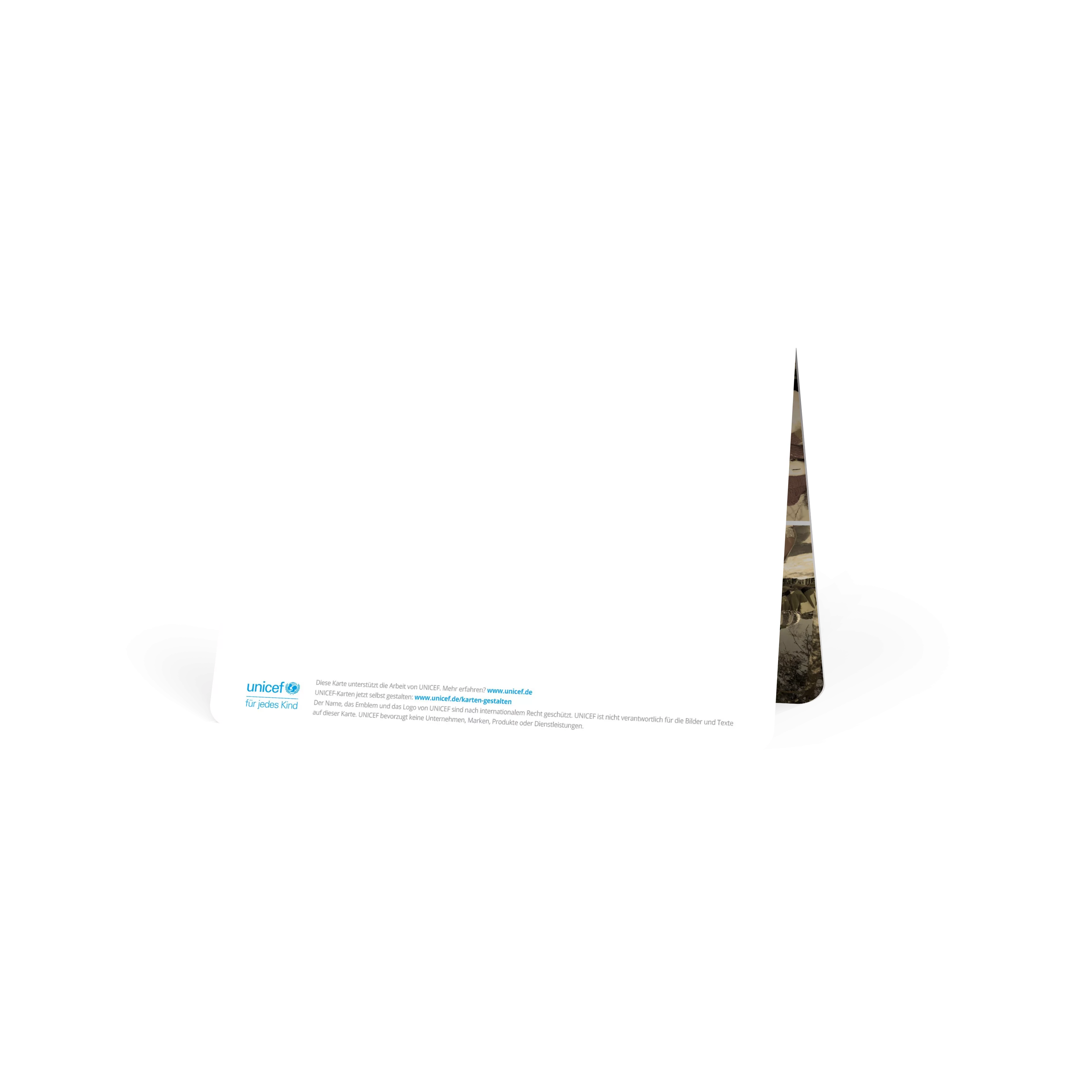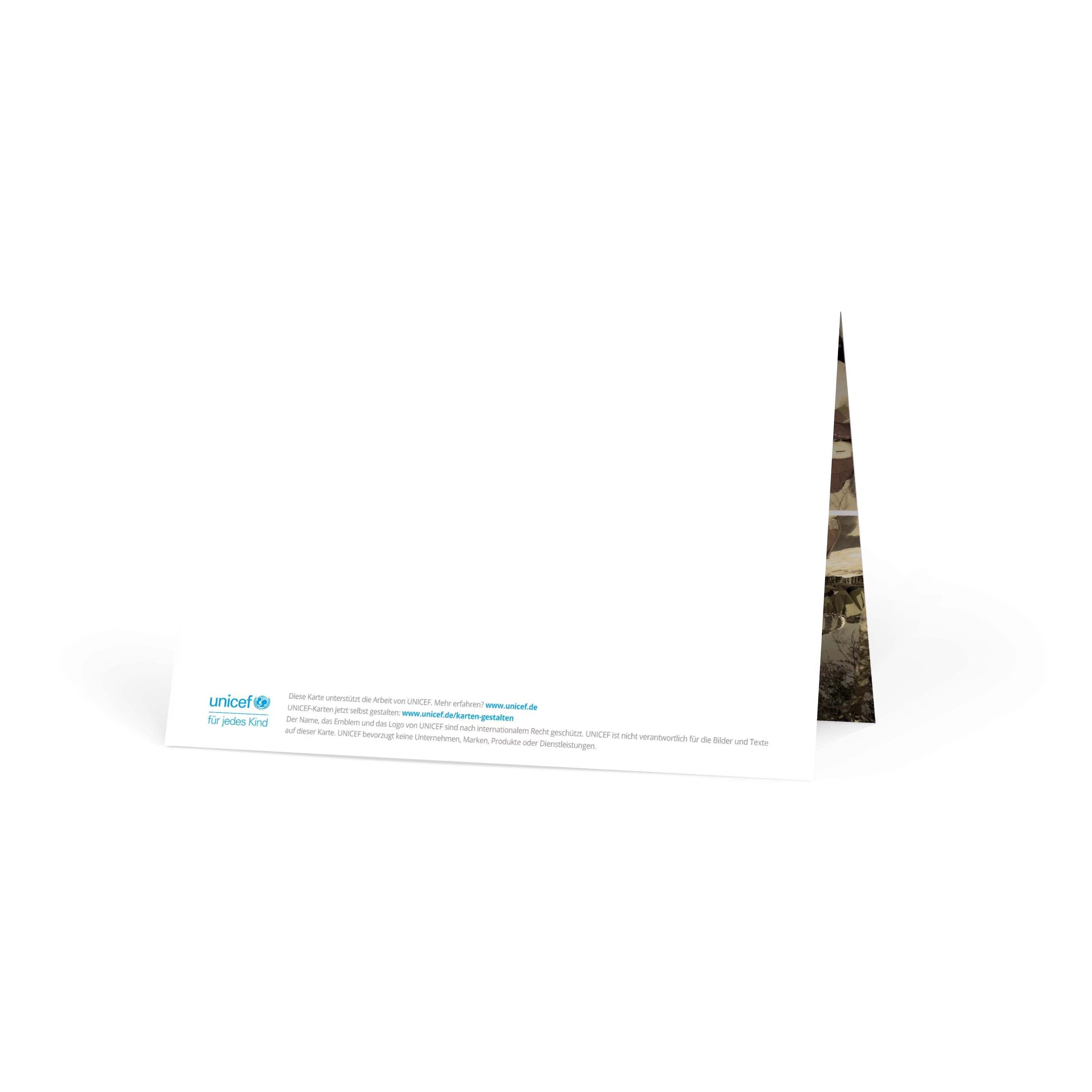 Alle UNICEF-Karten werden unter Einhaltung strenger internationaler Richtlinien hinsichtlich Qualität, Sicherheit, sozialer Verantwortung und Umweltschutz hergestellt. Denn UNICEF ist den Kindern und ihren Familien verpflichtet.
