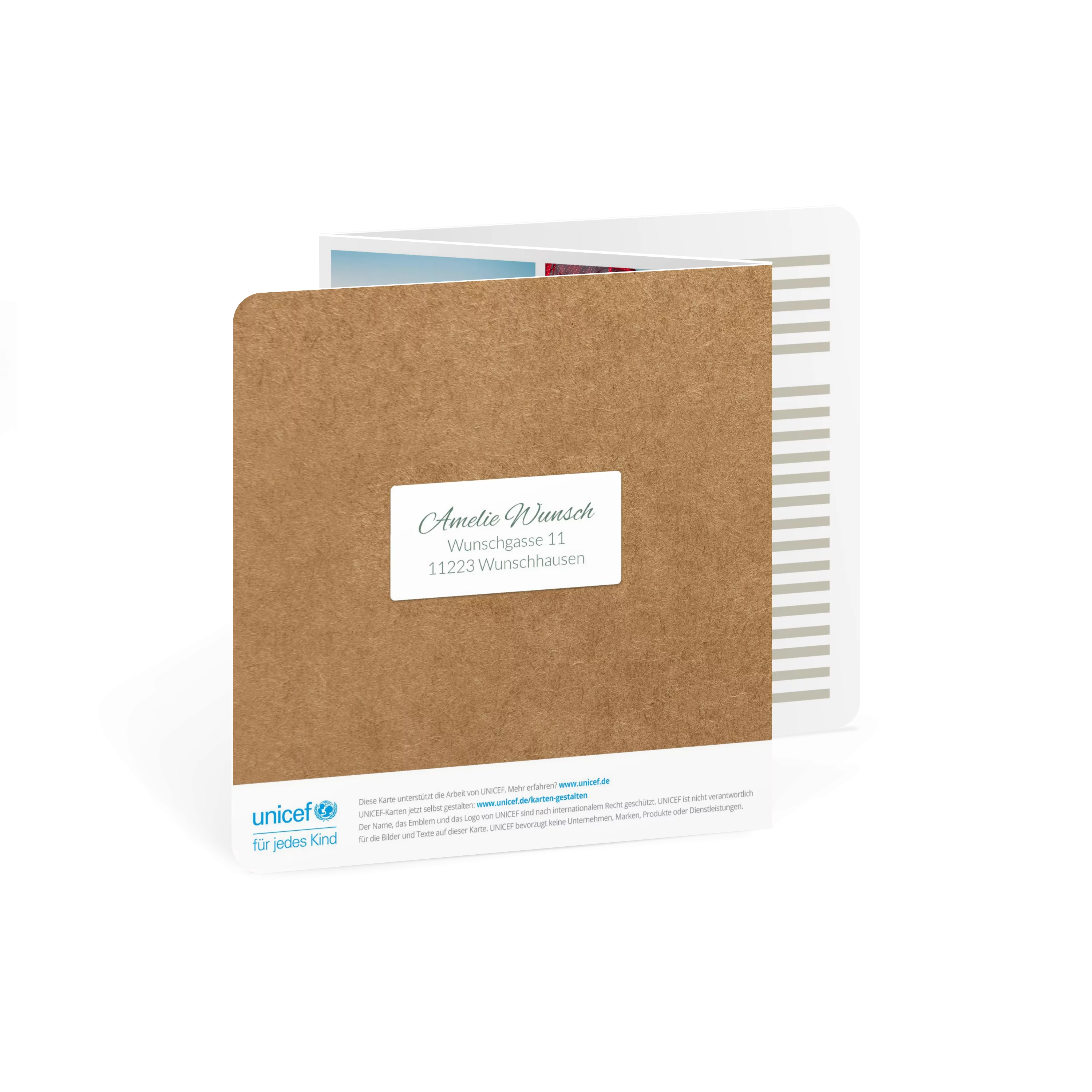 Alle UNICEF-Karten werden unter Einhaltung strenger internationaler Richtlinien hinsichtlich Qualität, Sicherheit, sozialer Verantwortung und Umweltschutz hergestellt. Denn UNICEF ist den Kindern und ihren Familien verpflichtet.