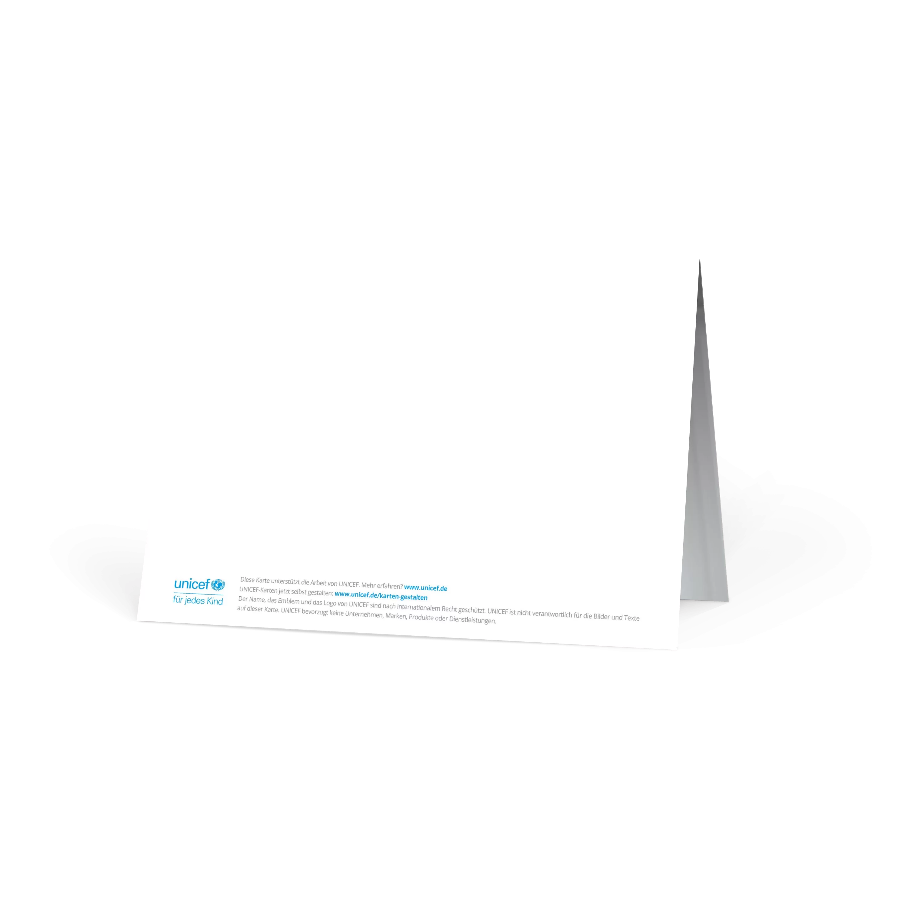 Alle UNICEF-Karten werden unter Einhaltung strenger internationaler Richtlinien hinsichtlich Qualität, Sicherheit, sozialer Verantwortung und Umweltschutz hergestellt. Denn UNICEF ist den Kindern und ihren Familien verpflichtet.